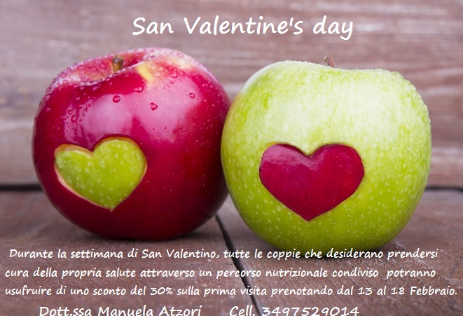 Dal 13 al 18 Febbraio 2017, tutte le coppie che prenoteranno una visita per intraprendere un percorso nutrizionale condiviso, potranno usufruire di uno sconto del 30% sulla prima visita!